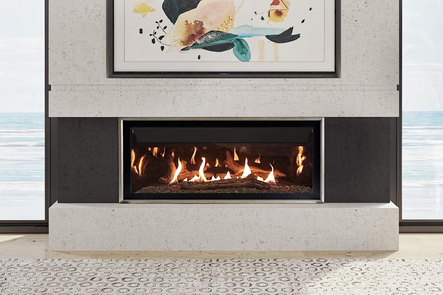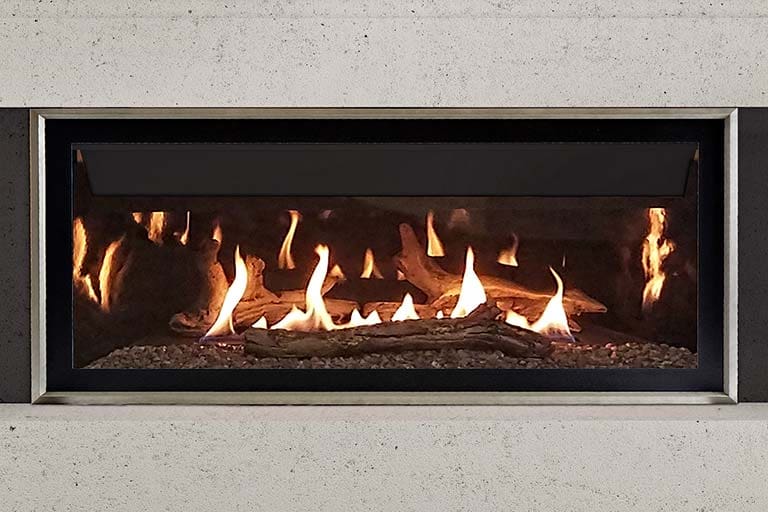 The Illusion® 47 Linear Gas Fireplace comes standard with – matte black interior finish, the Ecotel programmable thermostatic remote and gorgeous Vancouver Island drift wood logs. You can enhance the look of your Illusion® 47 to fit your home. You have the option to upgrade the exterior look with – Decorative Front. Also, optional logs are offered in oak or white birch. At last, double the flames by adding the porcelain enameled reflective panels inside the firebox. Enjoy its cozy flame and look anytime!