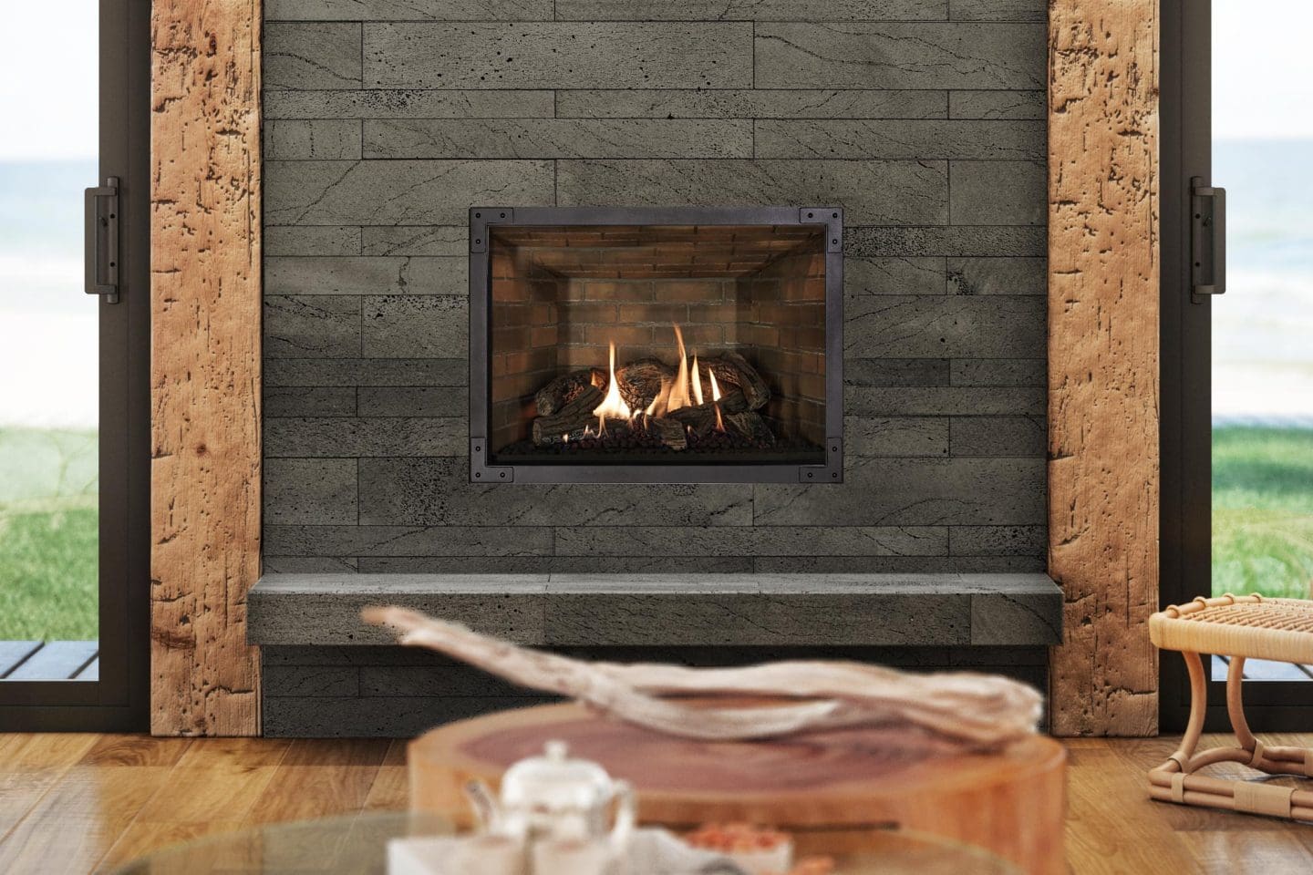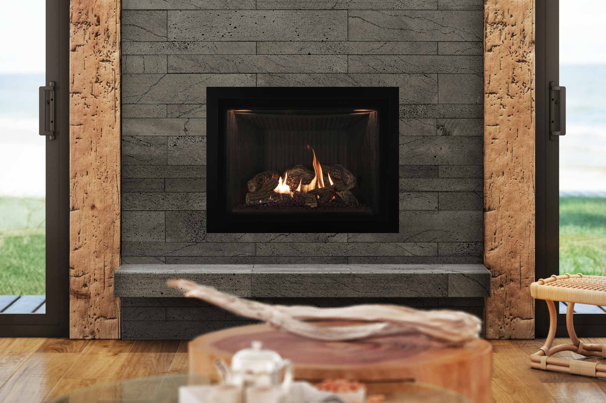 The Intrigue® combines radiant and convection heat providing you with one of the most efficient fireplaces on the market. It will warm your heart as well as your home. It comes standard with – matte black interior finish, the Ecotel programmable thermostatic remote, – 150-cfm convection fan, accent lights and glowing embers. You can customize the look of your Intrigue® 36 to fit your home. You have the option to upgrade the exterior look with – decorative front and also upgrade the firebox look using one of the beautiful interior finishes.