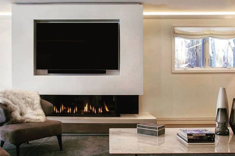 The linear direct vent fireplace is designed to appear longer across your space, creating the appearance of your fireplace hanging effortlessly in your wall. The term “linear fireplace” is used to describe the long rectangular glass opening and can be specified by length and glass height.